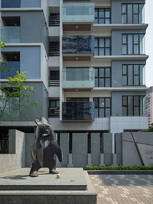 兩座雕塑取自台灣黑熊、梅花鹿,並結合表現手法來強化長群對社區的祝福。台灣黑熊設計雄健的站姿呼應享享CITY作為新創世代夢想基地的定位,與每個擁有壯志抱負、熱情有愛的夢想家們一同邁向未來。而梅花鹿的祝福源自鹿與「祿」同音,以升官晉祿、福、善的象徵守護社區;而長群還進一步將台灣黑熊、梅花鹿提升為品牌識別的吉祥物,用台灣黑熊代表堅固實在的工法、梅花鹿代表細膩講究的美學,牠們不只是宣傳工具,而更傳遞我們對土地感謝和驕傲的信念。當地方發展日益蓬勃,建築為人們帶來欣欣向榮的未來時,我們依然能為土地保有原生的記憶、將它融入新生活的文化底蘊中,以美感、藝術的感性方式讓這份在地的連結不被遺忘。