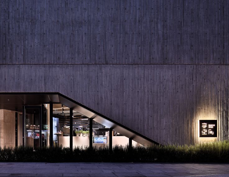 主體建築材料為台灣南投原生竹杉木清水模,澆灌出具有特殊竹節質感的清水竹模牆體,強化光影對建築表情的演繹。